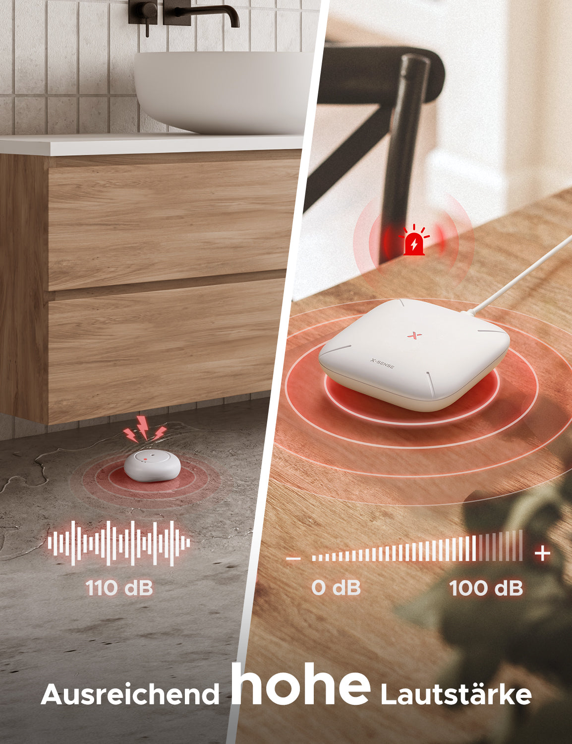 Sobald Wasser erkannt wird, löst der SWS51 einen lauten Alarm mit 110 dB aus und signalisiert das Ereignis zusätzlich über eine LED-Anzeige. In Verbindung mit der X-Sense SBS50 Basisstation erhalten Sie außerdem Push-Benachrichtigungen in Echtzeit über die X-Sense Home Security App – auch wenn Sie nicht zu Hause sind.